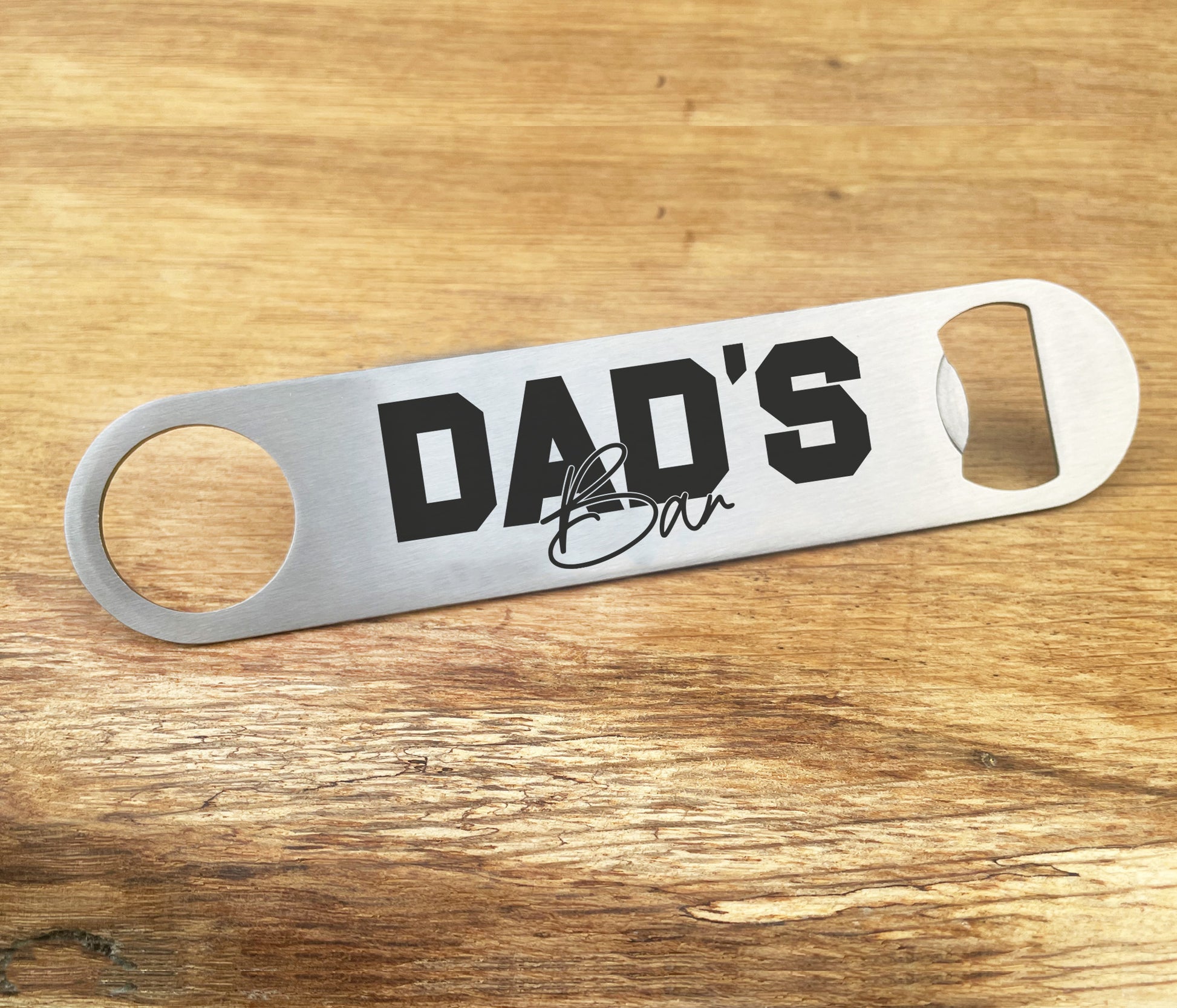 Dad's Bar bottle opener. This bottle opener is perfect for Dad's bar in his man cave. A perfect gift for a dad who loves his beer.