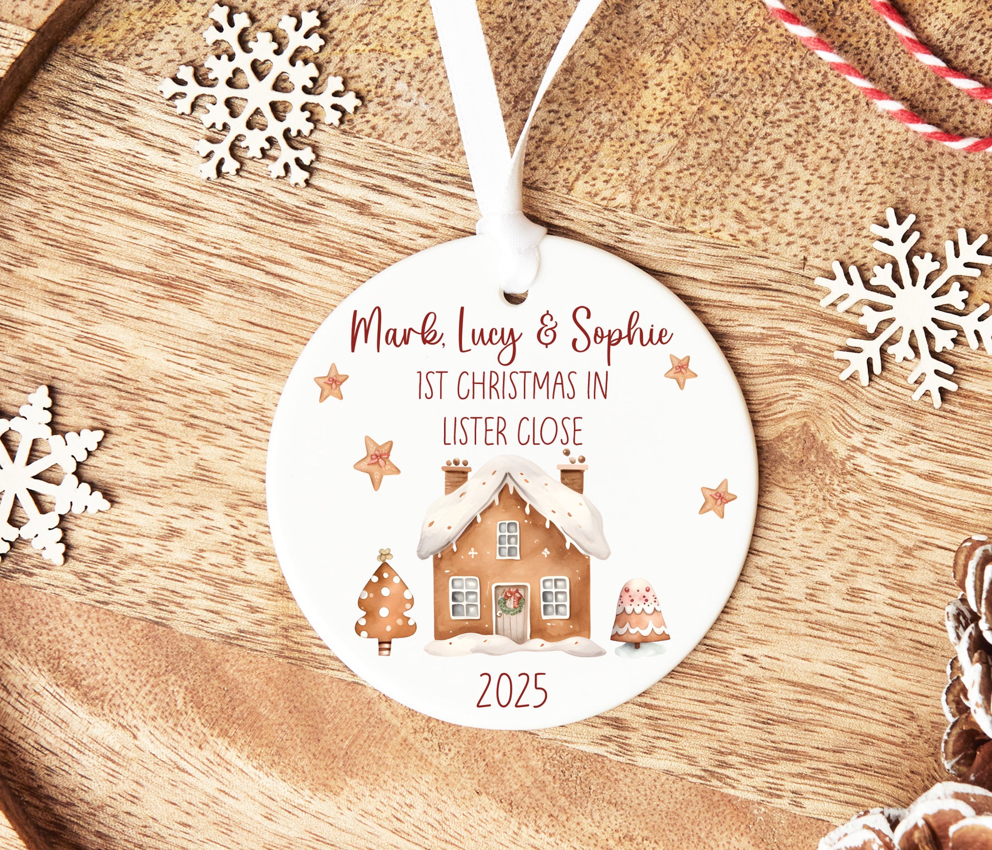 This personalised christmas bauble is a perfect new home gift or keepsake for your first Christmas in a new house.