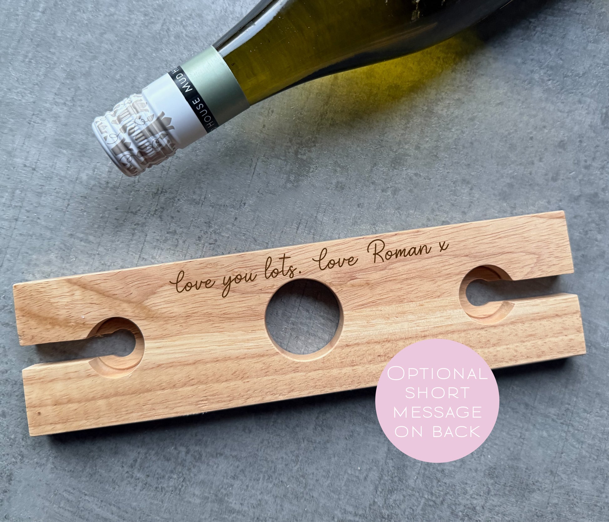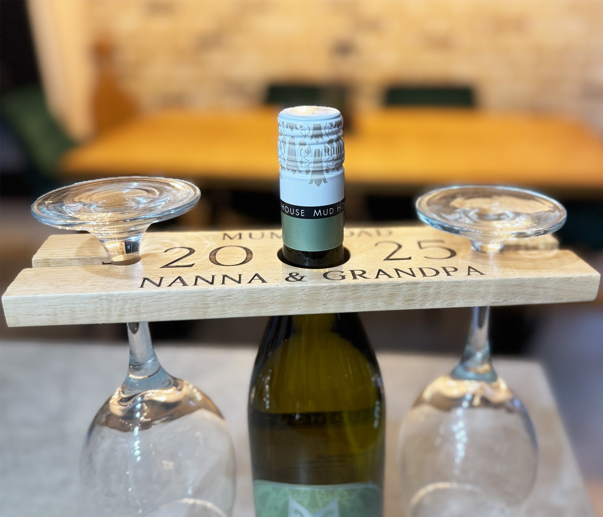 The wine butler is made from wood and is engraved with Mum & Dad at the top and your choice of grandparent title at the bottom, nanna and grandpa, nanny and grandad or anything else you may call them. The year is then engraved in the middle.