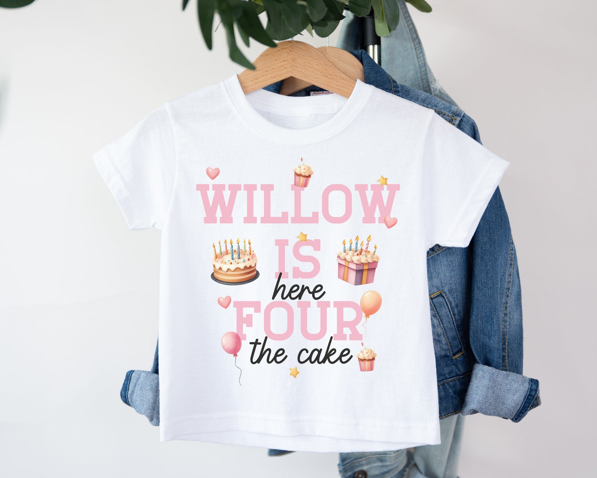 From our childrens range we bring you this gorgeous personalised 4th birthday t-shirt which is a perfect top for any little girl on her 4th birthday. Printed with a cute cake theme and the birthday girls name and the words 'is here four the cake'. This personalised birthday outfit will be perfect for her special day.