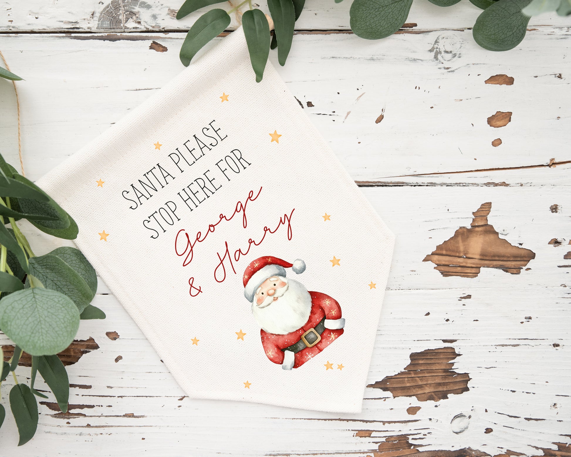 Santa please stop here! This personalised Santa sign will make a cute addition to your Christmas decor, personalised with your children's names.