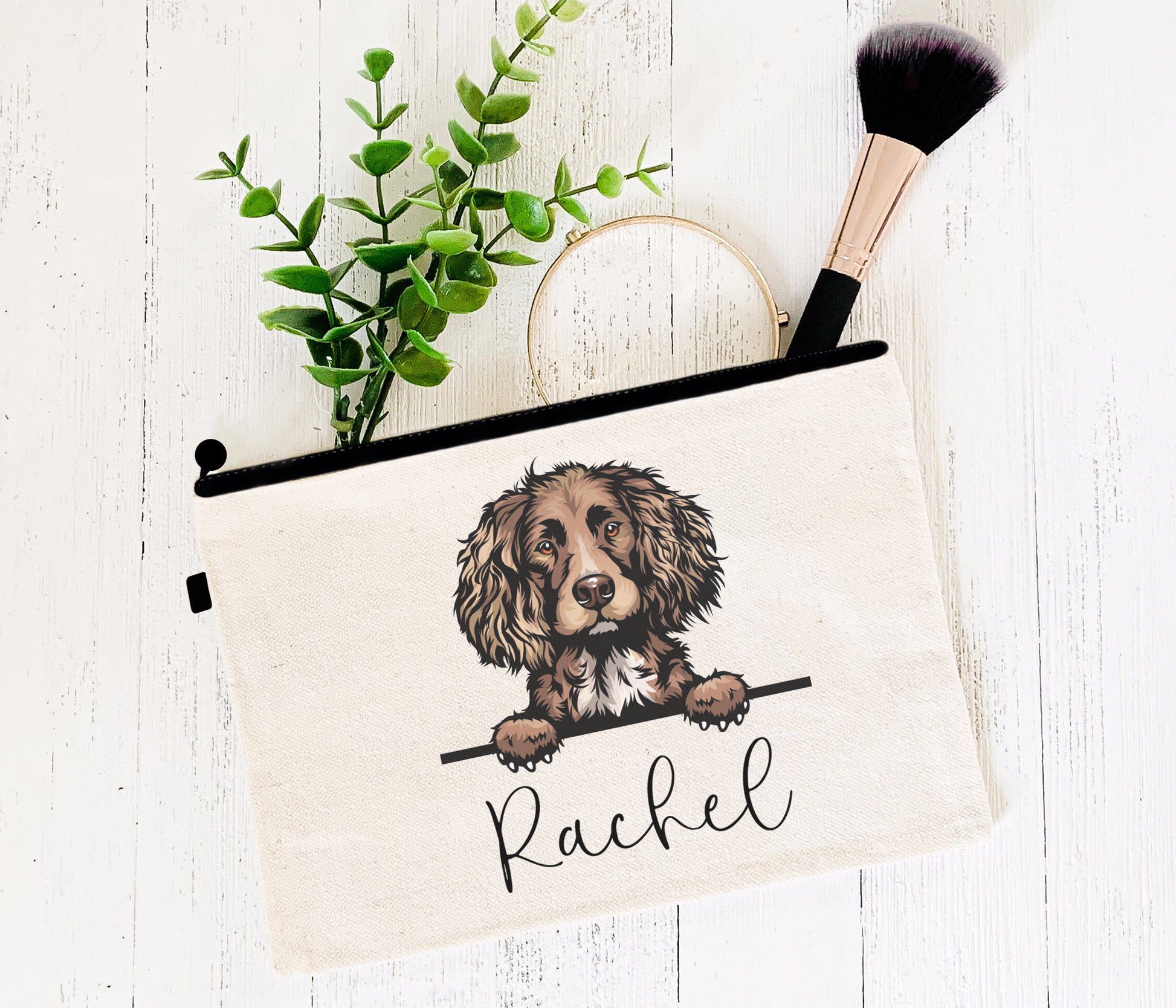Gorgeous spaniel accessory bag. This spaniel make-up bag is perfect for all your possessions or perfect to use for your dogs essentials out and about.
